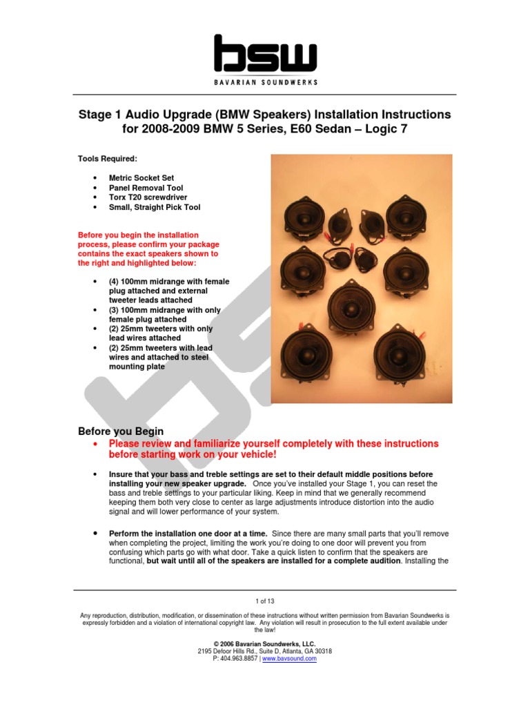 Bmw Speakers Install Bsw Stage 1 E60 Sedan Logic7 Pdf Loudspeaker Electrical Connector